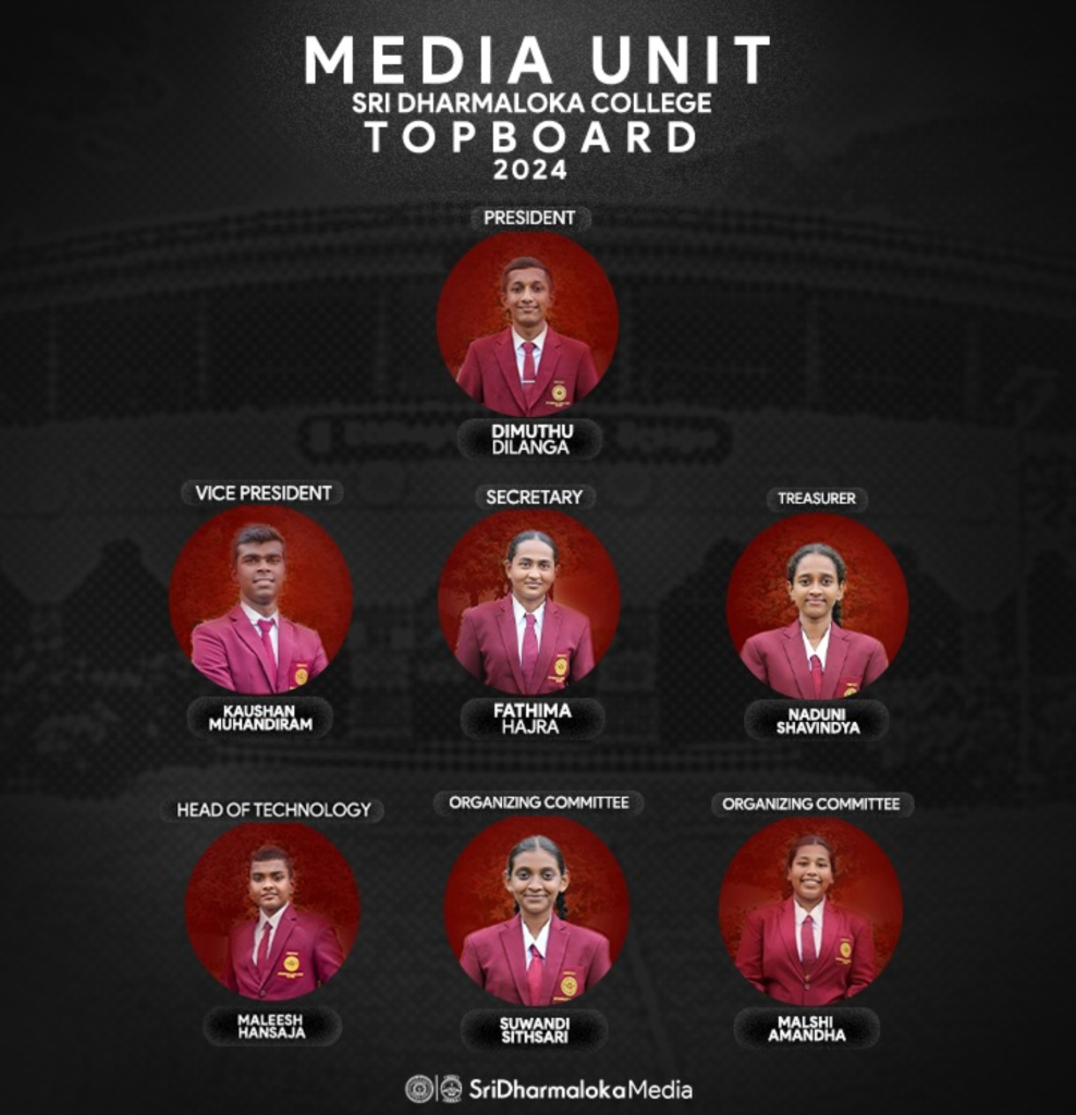 Sri Dharmaloka College Media Unit is the official media platform of the school, dedicated to capturing and sharing the essence of school life. It serves as the voice of the students, covering events, achievements, and important updates through photography, videography, journalism, and digital media production. With a passionate team of young media enthusiasts, the unit plays a key role in promoting the school’s activities, fostering creativity, and enhancing communication skills among students and became the Best media unit among Western provincial schools and holds the Best society of Our college as well.