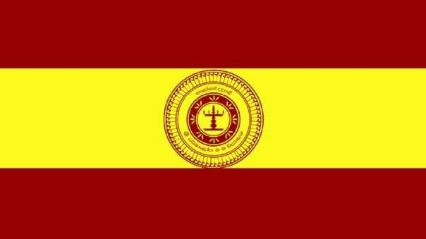 Our flag has been designed for many years since the school has begun. It has three columns and the color of the middle one is yellow and the side ones are maroon. In the middle column there is the crest of the school. It symbols our glory and our loyalty to our mother Dharmaloka. The sight of our flag brings us a great us a great proud and heartiness in our minds. In this case it enhances the love to mother Dharmaloka.